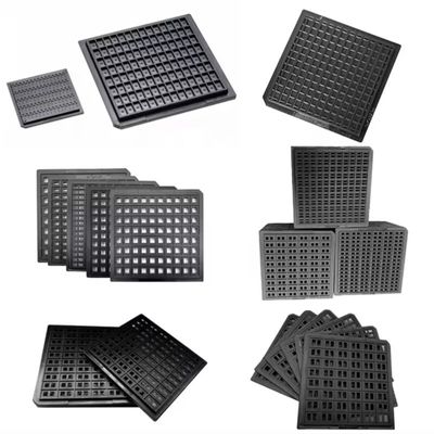 ROHS Black Stable Flatness PC 2-inch and 4-inch Waffle Pack Chip Trays For Electronic Die
