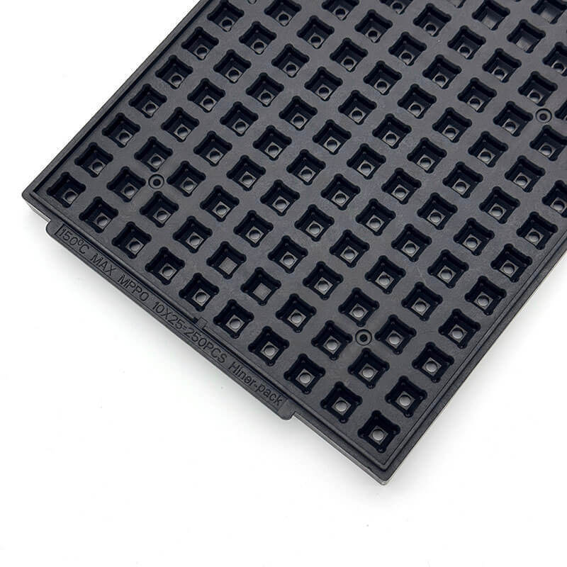The tray follows standard JEDEC dimensions, ensuring compatibility with automated handling equipment and semiconductor production processes.